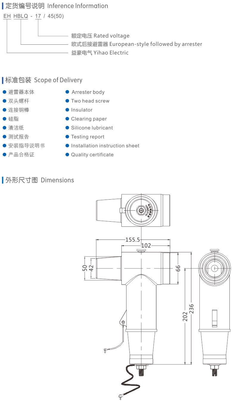 EH HBLQ-17/45(50) 欧式后接避雷器