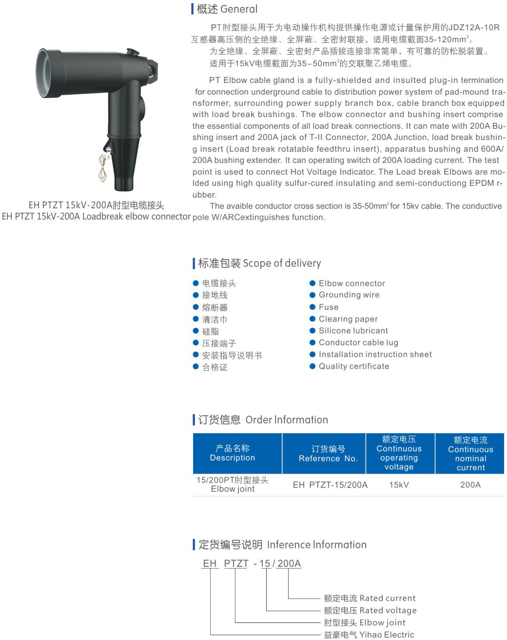 EHPT-15kV-200A PT肘型电缆接头