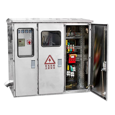 箱体结构分立式和卧式,外壳采用 2mm 优质不钢板经多重折边工艺弯制(或采用蜂窝结构的不锈钢双央层复合板,具有阻燃、环保、隔热、防凝露等性能),采用特殊不锈钢焊接工艺,箱体成型后整体强度高,表面光洁如镜,不留焊缝痕迹;内部安装梁(板)为热镀锌工艺处理,确保二十年内不锈蚀;箱体前后开门,便于用户操作和检修,门四周镇有高弹力耐老化密封胶条,每扇门均装有明暗两种门锁,明锁配有防堵防锈的遮雨罩;计量室全封闭带铅封装置;箱体侧面装有防雨防异物的进线电缆穿管,底部冲有通风孔和电缆出线孔,顶部设有通风道和丝网,具有防水、防锈、防尘、防异物的功能,防护等级:IP54。